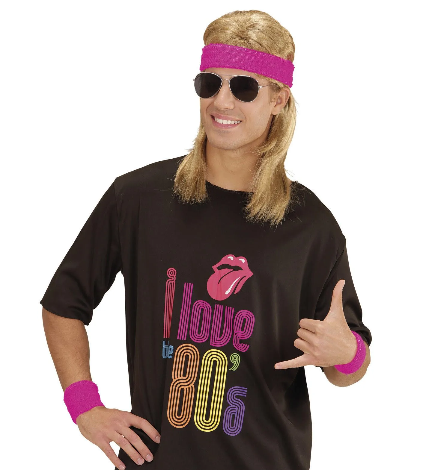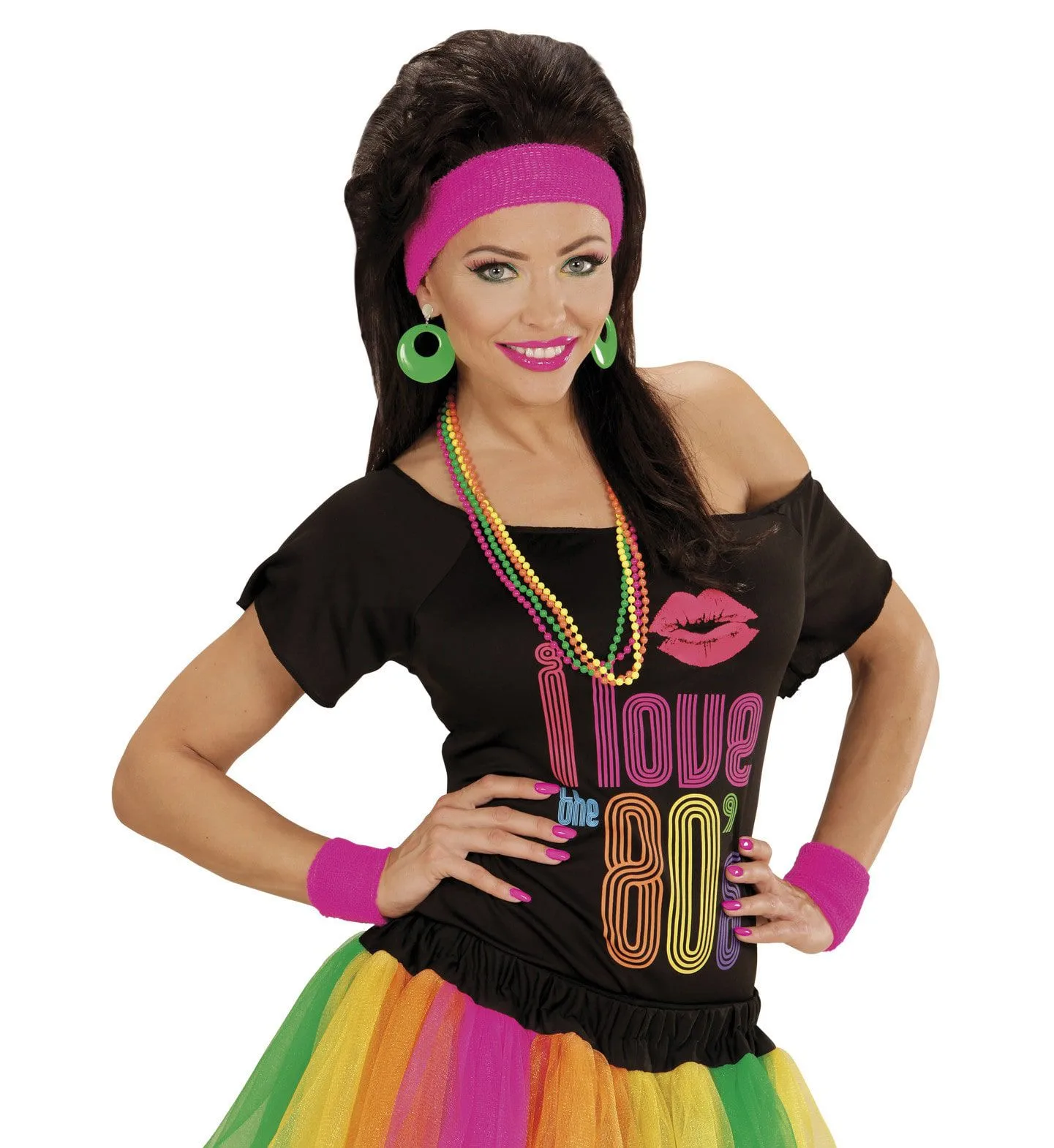 Atletische 80s Zweetband Set, Neon Rose