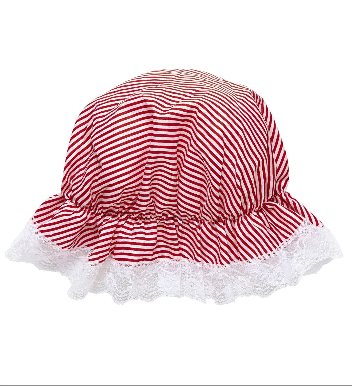 Boerinnen Slaapmuts Wit / Rood Gestreept