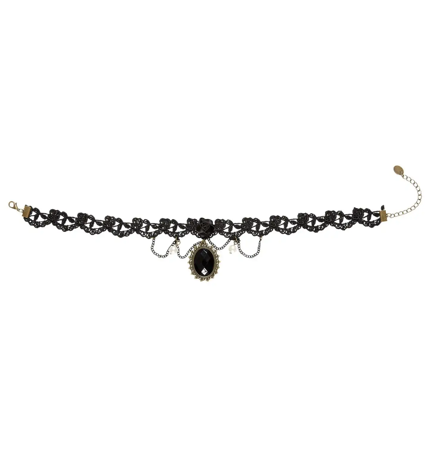 Chique Nekband Gothic Met Zwarte Steen En Rozen
