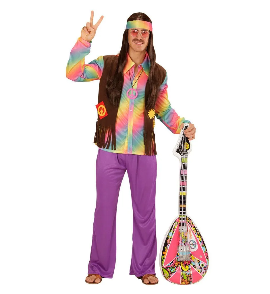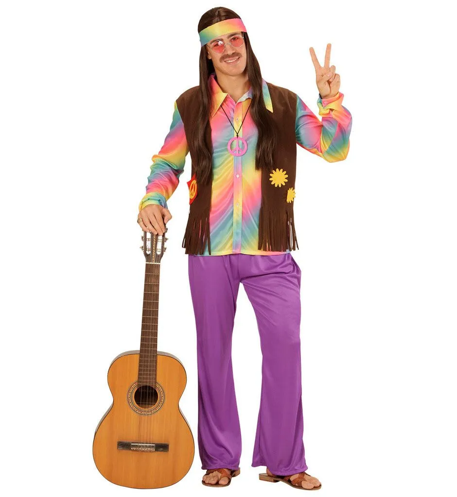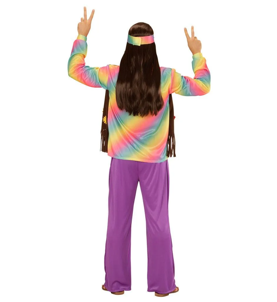 Met dit Comeback Hippie Man Kostuum wordt het wel een heel relaxed feestje! Daar zorg jij wel voor, in deze ontspannen Flower Power -kleding. Marihuana of andere verdovende middelen heb je daarvoor niet eens nodig, want kleurtjes zie je al genoeg in deze Multicolor Hippiepak. Peace!